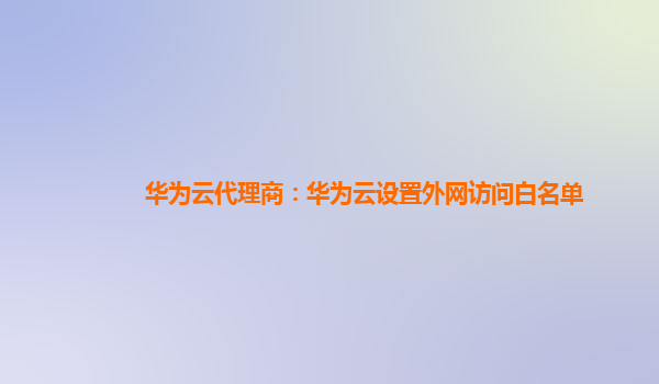 2025-03-16华为云代理商:华为云设置外网访问白名单 随着云计算的快速发展,越来越多的企业和个人选择使用云服务,以便更好地管理数据、提高工作效率以及节约成本。作为国内领先的云服务提供商,华为云以其强大的技术背景和综...