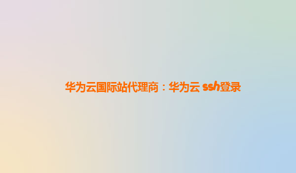 2025-03-15华为云国际站代理商:华为云SSH登录优势解析 随着云计算技术的不断发展,越来越多的企业和开发者开始选择云平台来托管自己的业务数据。华为云作为国内领先的云计算服务提供商,其在全球市场的布局也日益深入,特别...