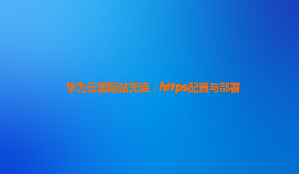 2025-03-15华为云国际站充值:HTTPS配置与部署 随着云计算的飞速发展,越来越多的企业和个人开始选择云平台来部署和管理自己的业务系统。华为云凭借其强大的技术实力和全球化布局,已经成为了全球领先的云服务提供商之一。本...