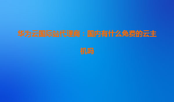 2025-12-26华为云国际站代理商:国内有什么免费的云主机吗? 国内免费云主机现状概述 随着云计算技术的普及,越来越多的企业和个人开发者开始关注云主机的使用。在国内市场,许多...