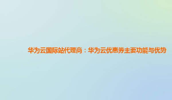 2025-03-08华为云国际站代理商:华为云优惠券主要功能与优势 随着云计算行业的迅速发展,越来越多的企业开始选择云服务来提升其业务的灵活性和效率。在众多云服务提供商中,华为云以其领先的技术、丰富的产品线和优质的服务,...
