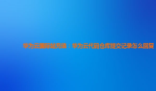 2025-03-05华为云国际站充值:华为云代码仓库提交记录如何回复 在云计算和大数据时代,越来越多的企业和开发者开始使用云平台来提升开发效率和数据管理能力。华为云作为国内领先的云服务平台,在全球范围内不断扩展其影响力。...