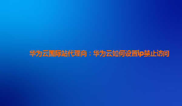 2025-03-03华为云国际站代理商:华为云如何设置IP禁止访问 随着云计算技术的飞速发展,越来越多的企业开始将业务迁移到云端。而华为云作为国内领先的云服务平台,凭借其强大的技术实力和全球化的服务能力,成为了众多企业的首...