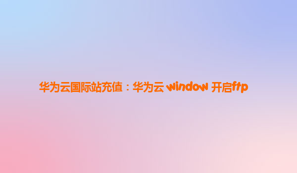 2025-03-02华为云国际站充值:华为云Windows开启FTP 随着云计算技术的迅猛发展,越来越多的企业和个人用户选择使用云服务来满足其各类业务需求。华为云作为全球领先的云计算服务提供商,凭借其强大的技术背景和全球化布局...
