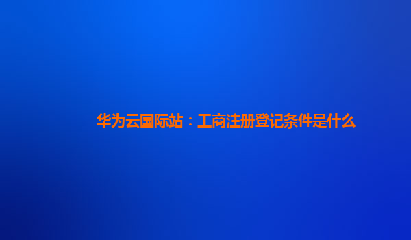 华为云国际站:工商注册登记条件是什么? 随着数字化时代的到来,云计算已成为全球商业发展的关键工具之一。越来越多的企业选择通过云平台来提升自己的运营效率,而华为云作为全球领先的云服务提供商,凭借其强大的...