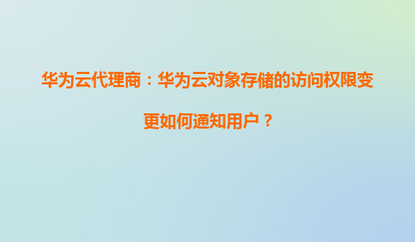 2026-01-09华为云代理商:华为云对象存储的访问权限变更如何通知用户? 引言:权限管理在对象存储中的重要性 在云计算时代,数据安全是企业核心关注点之一。华为云对象存储(OBS)...