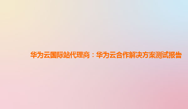 2025-02-19华为云国际站代理商:华为云合作解决方案测试报告 随着全球信息化的不断发展,云计算技术在企业运营中的应用越来越广泛。华为云作为全球领先的云服务提供商之一,以其卓越的技术、稳定的服务和广泛的市场覆盖,得到...