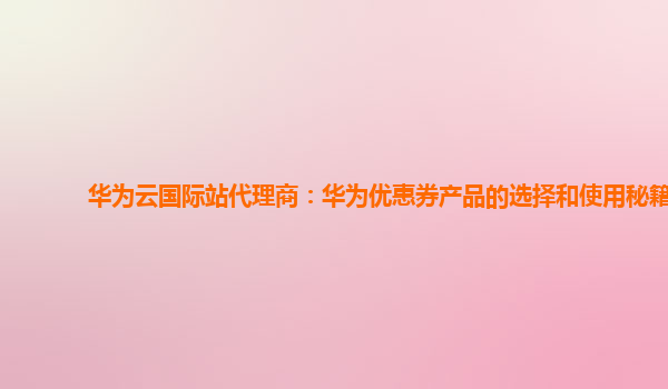 2025-02-19华为云国际站代理商:华为优惠券产品的选择和使用秘籍 在当今云计算日益发展的时代,越来越多的企业和开发者开始关注云服务平台的选择。而在众多云服务提供商中,华为云凭借其强大的技术实力和多样化的产品服务,迅...