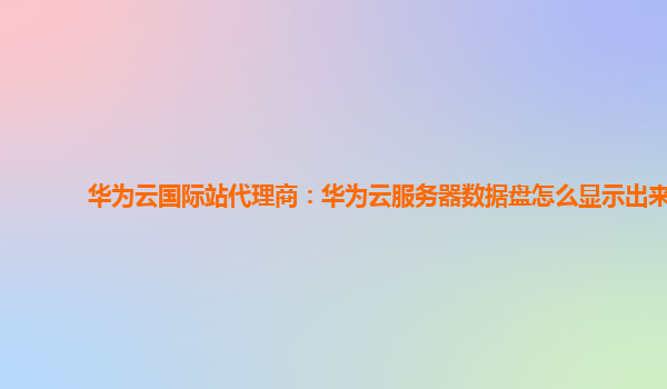 2025-02-15华为云国际站代理商:华为云服务器数据盘怎么显示出来 在云计算快速发展的今天,越来越多的企业和个人选择使用云服务器来部署和运行他们的应用。而华为云作为全球领先的云服务提供商,凭借强大的技术支持...