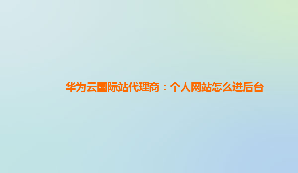 2025-02-15华为云国际站代理商:个人网站怎么进后台 随着互联网的快速发展,越来越多的企业和个人选择建立自己的网站。作为一个华为云国际站代理商,帮助客户搭建和管理个人网站已经成为常见的业务之一。然而,许多初次接触网...