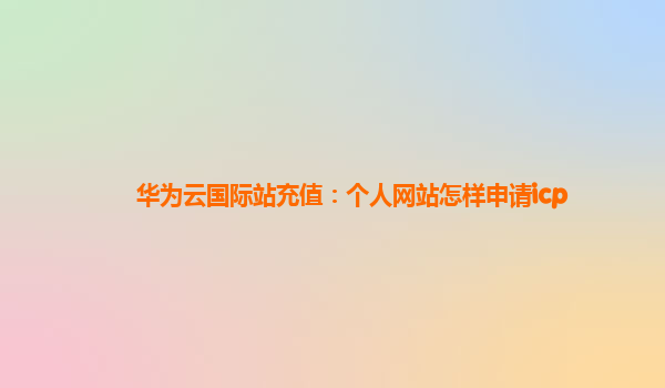 2025-02-15华为云国际站充值:个人网站怎样申请ICP许可证 随着互联网的快速发展,个人网站的建设和运营逐渐成为了许多用户关注的热点。在中国大陆,想要合法运营一个网站,必须遵守国家的相关法规,其中最为重要的一项就是申...