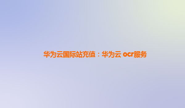 2025-02-14以下是关于“华为云国际站充值:华为云OCR服务”的文章,包含了清晰的结构和分析,适合用于展示华为云的优势以及结合其服务器产品的内容。文章以HTML格式输出,字数不少于1000字。 华为云国际站充值:华为云...