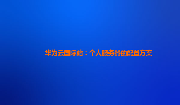 2025-02-14华为云国际站:个人服务器的配置方案 随着云计算技术的快速发展,越来越多的个人和小型企业选择使用云服务器来进行数据存储和应用部署。华为云作为国内领先的云服务提供商,凭借其强大的技术实力和全球化布局,已成...