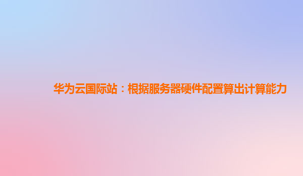 2025-02-14华为云国际站:根据服务器硬件配置算出计算能力 在当今的数字化时代,计算能力已经成为衡量服务器性能的一个重要指标。尤其是在云计算的背景下,云服务器的计算能力直接决定了企业能否快速、高效地处理海量数据。华...