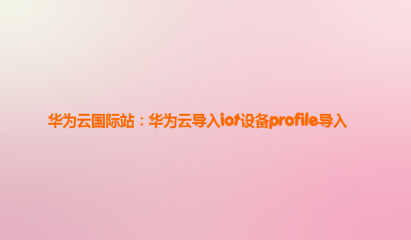 2025-02-12华为云国际站:华为云导入IoT设备Profile导入 引言 随着物联网(IoT)技术的快速发展,设备管理变得越来越复杂和关键。华为云作为领先的云服务提供商,不仅提供强大的云计算能力,还深耕IoT领域,为全球用户提...