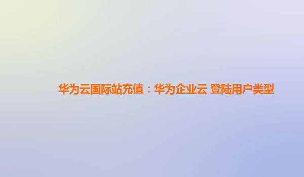 2025-02-10华为云国际站充值:华为企业云登陆用户类型 随着云计算技术的不断发展,越来越多的企业开始依赖云服务提供商来推动数字化转型,而华为云凭借其强大的技术实力和全面的云服务解决方案,成为全球企业在选择云服务时的...