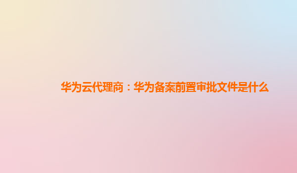 2025-02-10华为云代理商:华为备案前置审批文件是什么 随着云计算行业的不断发展,越来越多的企业开始选择云服务提供商来满足其技术和数据存储需求。在众多云服务提供商中,华为云凭借其强大的技术实力、丰富的产品种类和优质...