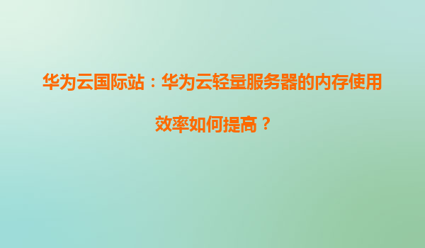 2026-01-08华为云国际站:华为云轻量服务器的内存使用效率优化指南 一、华为云轻量服务器简介 华为云轻量服务器(HuaweiCloudLightweightServer)是面向中小企业及开发者推出的高性价比云计算产...