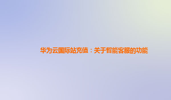 2025-01-12华为云国际站充值:关于智能客服的功能 随着云计算技术的飞速发展,越来越多的企业和个人开始使用云服务,华为云作为行业的佼佼者,凭借其强大的技术背景和创新能力,提供了一系列丰富的云产品和服务。华为云国际站...