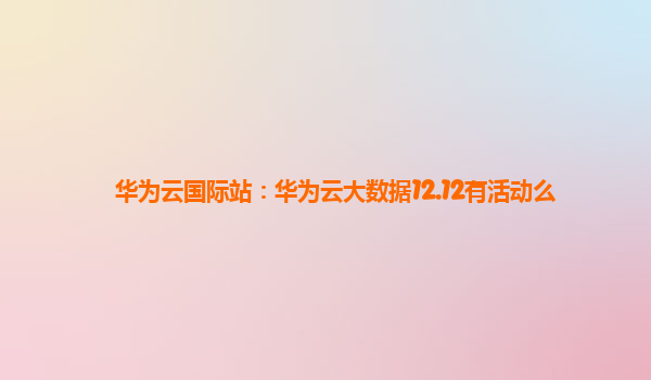 2025-01-09华为云国际站:华为云大数据12.12活动揭秘 随着12月的到来,许多企业和个人都开始为即将到来的双12购物狂欢做准备,华为云也不例外,推出了丰富的大数据活动。作为中国领先的云计算服务商之一,华为云凭借其强大的...