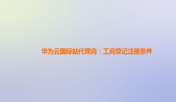 2025-01-08华为云国际站代理商:工商登记注册条件 引言 华为云作为全球领先的云服务提供商,致力于为企业和个人提供高效、安全、可靠的云计算服务。成为华为云国际站代理商,不仅是商业机会,更是对合作伙伴资质和能...