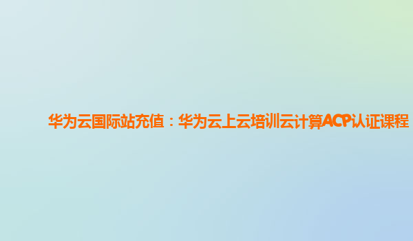 2025-01-06华为云国际站充值:华为云上云培训云计算ACP认证课程 随着数字化转型的深入,越来越多的企业和个人都开始关注云计算技术的应用,而云计算相关的技能认证也成为了行业的重要标准。作为全球领先的云计算服务提供商,...
