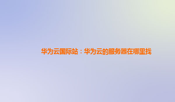2025-01-01华为云国际站:华为云的服务器在哪里找 随着云计算技术的飞速发展,越来越多的企业和开发者开始依赖云服务来满足不同的业务需求。作为全球领先的ICT(信息与通信技术)解决方案提供商,华为云凭借其强大的技术实力...