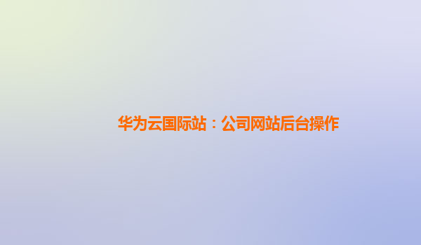 2024-12-31华为云国际站:公司网站后台操作 随着企业数字化转型的不断推进,越来越多的公司选择借助云计算平台来部署和管理其网站。作为全球领先的云计算服务提供商之一,华为云凭借强大的技术实力和丰富的产品生态,已成为全...