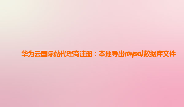 2024-12-10华为云国际站代理商注册:本地导出MySQL数据库文件 在数字化时代,云计算服务已成为企业和开发者必不可少的工具。作为全球领先的云计算服务提供商之一,华为云凭借其先进的技术、全球化的基础设施和强大的业务支持...