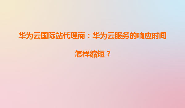 2026-01-08华为云国际站代理商:华为云服务的响应时间怎样缩短? 引言 在当今数字化时代,云服务的响应时间是衡量服务质量的重要指标之一。对于华为云国际站的代理商而言,如何有效缩短华为云服务的响应时间,提升用...