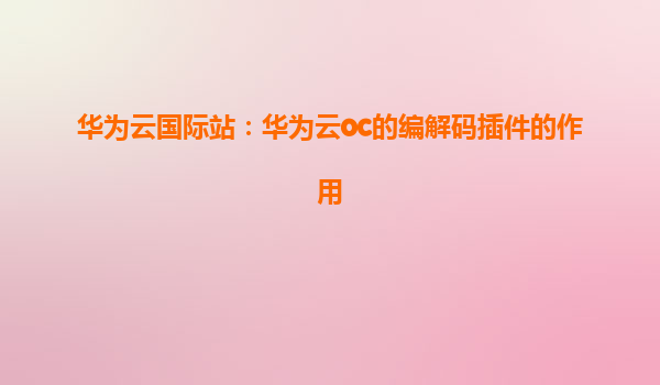 2025-12-16华为云国际站:华为云OC的编解码插件的作用解析 引言 在数字化时代,音视频数据的处理已成为企业业务的重要组成部分。华为云国际站提供的华为云OC(OpenCloud)编解码插件,凭借其高效、稳定和灵活的特性...