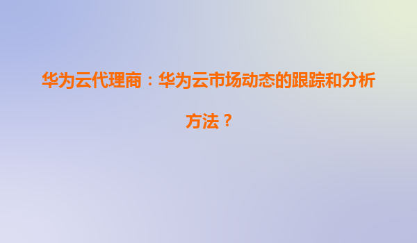 2026-01-08华为云代理商:华为云市场动态的跟踪和分析方法 随着云计算市场的快速发展,华为云作为全球领先的云服务提供商之一,凭借其强大的技术实力和本地化服务能力,在国内外市场占据了重要地位。作为华为云代理商,及...