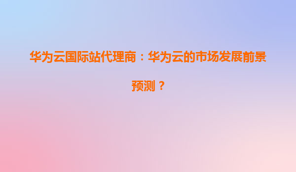 2026-01-08华为云国际站代理商:华为云的市场发展前景预测 引言 随着全球数字化转型的加速推进,云计算作为核心技术之一,正在重塑企业的IT架构和业务模式。华为云作为中国领先的云服...