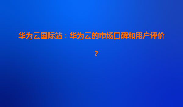 2026-01-08华为云国际站:华为云的市场口碑和用户评价深度解析 一、引言:华为云的全球化布局与市场定位 华为云作为华为集团旗下的云计算服务品牌,自2017年正式成立以来...
