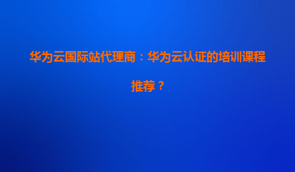 2026-01-07华为云国际站代理商:华为云认证的培训课程推荐 一、华为云认证培训概述 华为云作为全球领先的云服务提供商,其认证体系旨在帮助个人和企业掌握云计算核心技术,提升业务能力。华为云国际站代理商可通过认...