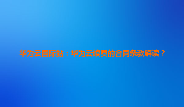 华为云国际站:华为云续费的合同条款解读 引言 随着云计算技术的快速发展,企业上云已成为数字化转型的重要选择。作为全球领先的云服务提供商,华为云凭借其强大的技术实力和丰富的产品矩阵,为全球客户...