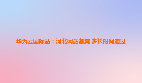2025-12-05华为云国际站:河北网站备案多长时间通过? 一、河北网站备案流程及时间解析 河北省网站备案通常需要10-20个工作日完成,具体时长取决于材料完整性、管局审核效率等因素。华为云国际站作为全...