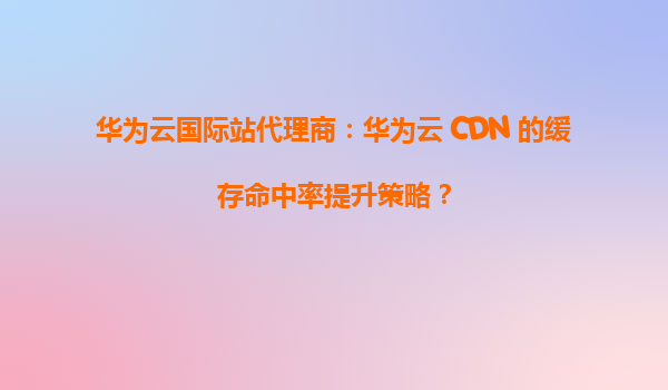 2026-01-07华为云国际站代理商:华为云CDN的缓存命中率提升策略 引言 在当今数字化时代,内容分发网络(CDN)已成为提升网站性能和用户体验的关键技术。作为华为云国际站代理商,我们深知缓存命中率是衡量CDN效能的...