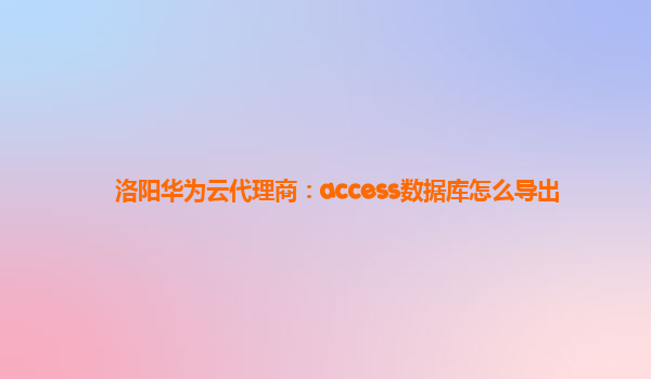 • 洛阳华为云代理商:access数据库怎么导出