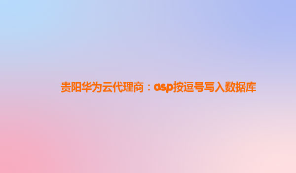 2024-02-04贵阳华为云代理商:ASP按逗号写入数据库引言华为云作为国内领先的云计算服务提供商,提供了一系列功能强大、安全可靠的云服务。在贵阳地区,我们作为华为云的代理商,向各企业和个人提供了一体化的云计算解决方案。...
