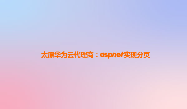 • 太原华为云代理商:aspnet实现分页