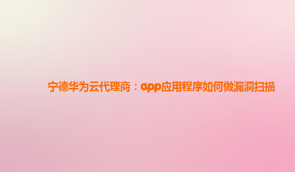 • 宁德华为云代理商:app应用程序如何做漏洞扫描