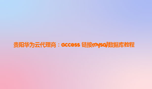 • 贵阳华为云代理商:access 链接mysql数据库教程