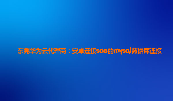 2024-01-23东莞华为云代理商:安卓连接SAE的MySQL数据库连接 引言 HuaweiCloud(华为云)是华为公司推出的全球领先的云计算与人工智能服务平台,为各类企业和开发者提供高效、可靠、灵活和安全的云计算基础设施和软件服务。...