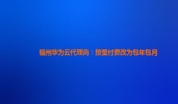 2024-01-23福州华为云代理商:按量付费改为包年包月 引言 华为云作为一家领先的云计算服务提供商,不断创新并满足客户的需求。近期,福州华为云代理商决定推出一个新的服务方式,将原先的按量付费模式改为包年包月模式,以更...