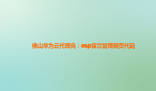 2024-01-13佛山华为云代理商:ASP留言管理网页代码 引言 随着互联网的快速发展,网站成为了企业进行宣传和沟通的重要工具。而网站上的留言功能也成为了与用户进行互动的重要渠道之一。本文将介绍如何使用ASP开发一个简单的留...