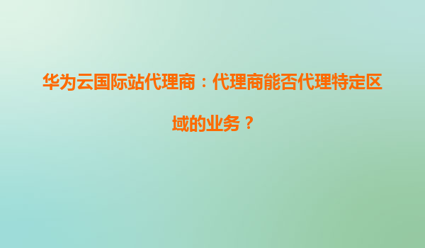 2026-01-06华为云国际站代理商:代理商能否代理特定区域的业务? 引言 随着全球云计算市场的快速发展,越来越多的企业选择通过云服务提供商(如华为云)来满足其IT基础设施需求。作为华为云国际站的代理商,了解代理...