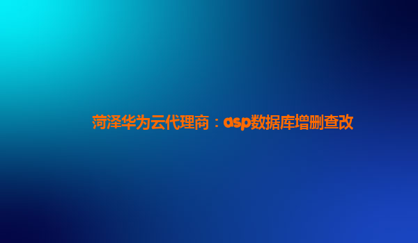 菏泽华为云代理商:asp数据库增删查改 一、引言 随着云计算技术的快速发展,华为云作为全球领先的云服务提供商之一,提供了一系列强大的云服务和产品。本文将重点介绍在菏泽地区作为华为云代理商,如何使用ASP语言...
