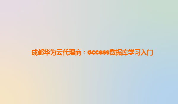 2024-01-05成都华为云代理商:Access数据库学习入门 目录 什么是Access数据库? 华为云的优势 Access数据库学习指南 总结 1.什么是Access数据库? Access...