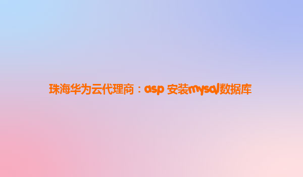 珠海华为云代理商:ASP安装MySQL数据库 1.简介 本文将介绍如何在珠海华为云代理商提供的ASP环境中安装和配置MySQL数据库。 2.准备工作 在开始之前,请确保您已经完成以下准备工作: 已注册并登录华为云代理商...